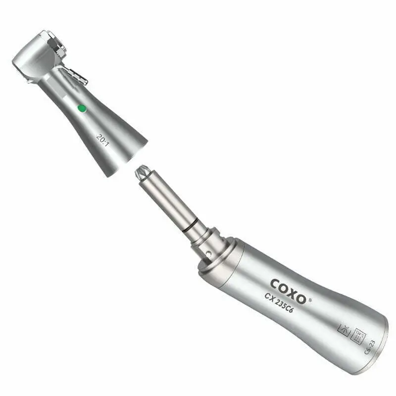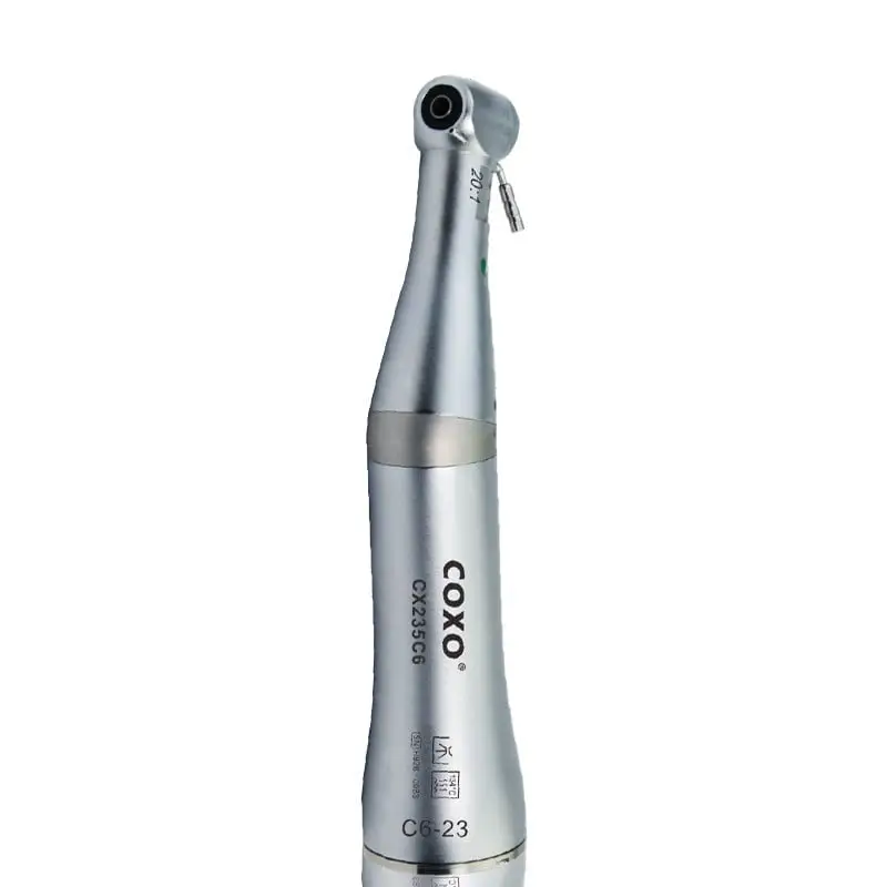 Piesa contraunghi pentru implantologie C6-23 de la COXO este un instrument de înaltă precizie, conceput special pentru procedurile de implantologie dentară. Cu un raport de reducere de 20:1, această piesă contraunghi asigură un control excelent și o performanță superioară în timpul plasării implanturilor, oferind în același timp confort atât pentru pacient, cât și pentru profesionistul stomatolog.