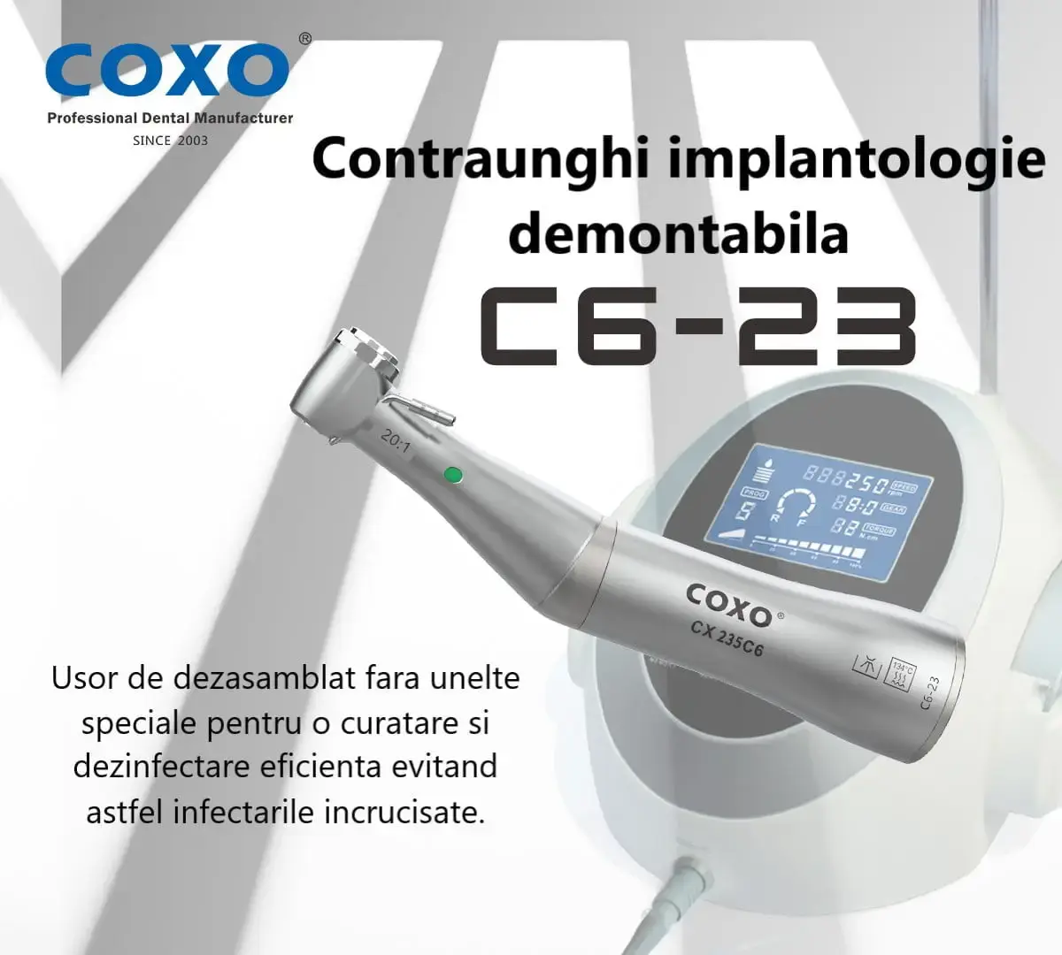 COXO Dental este o firmă de renume cu o experiență de peste 12 ani în fabricarea de turbine și piese de mână cu un raport calitate preț excelent.