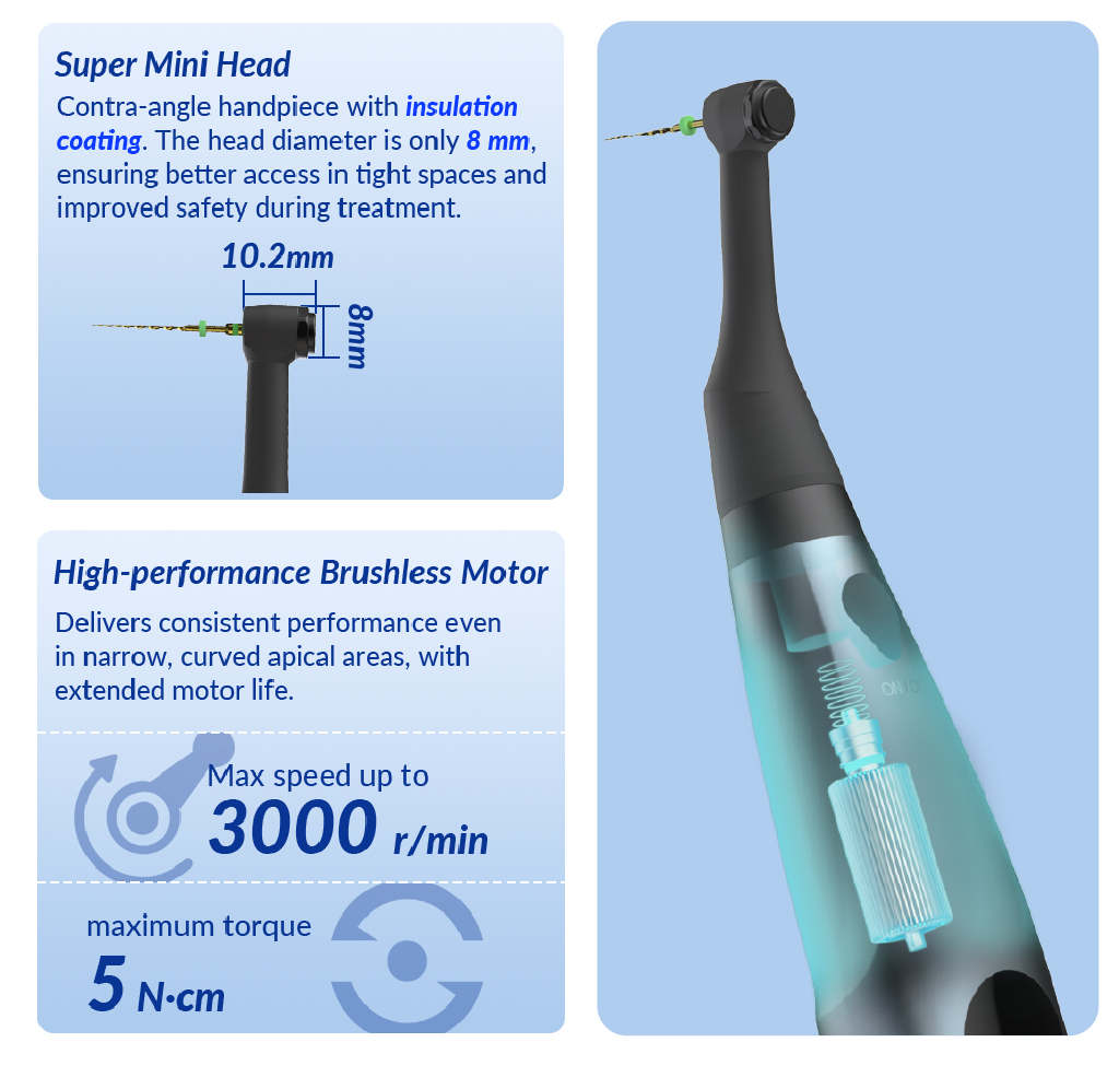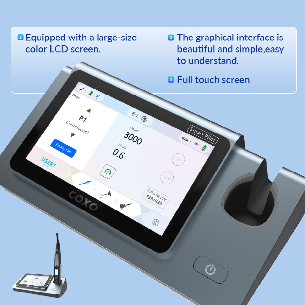 Endomotorul wireless C-Smart Pilot COXO este un instrument esențial pentru orice cabinet stomatologic specializat în endodonție, oferind performanțe superioare, precizie și confort în utilizare, contribuind astfel la succesul tratamentelor endodontice și la satisfacția pacienților.