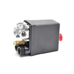 Comutator de presiune, presostat compresor. Setat pentru pornire la 6 Bari si oprire la 8 Bari. Racorduri multiple in partea inferioara.